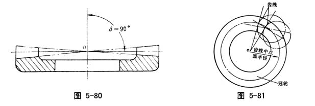 分度锥角δ=90°的锥齿轮(图5-80)。以锥齿轮的锥顶O至节点P的距离