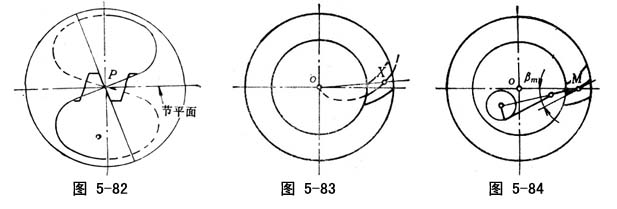 一个锥齿轮,其产形冠轮的齿面形状为平面时,称为8字啮合锥齿轮(图5-82)。由该齿轮组成的锥齿轮副,在球面上的理论啮合线”字形状的封闭曲线。